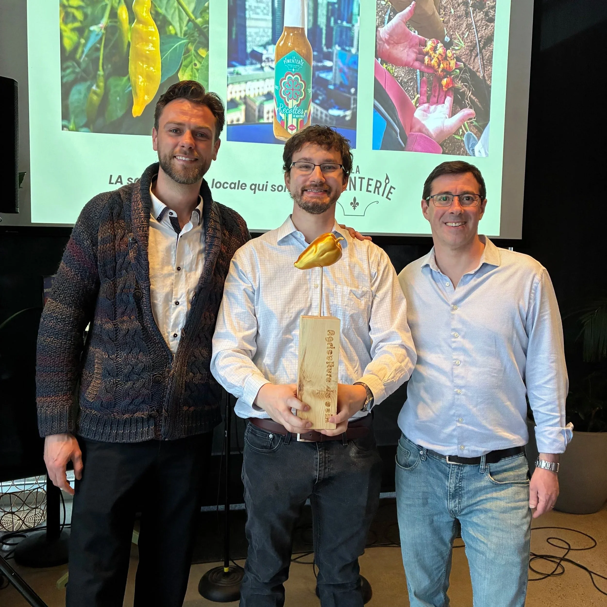 Le Piment d’or Entrepreneuriat 2026 a été remis à la ferme urbaine Agriculture du coin pour sa vision de renforcer les centres-ville d’aujourd’hui avec les technologies agricoles de demain. De montrer qu’il est possible de ramener et d’intégrer l’agriculture au sein de nos villes et que l’utilisation de différentes technologies agricole nous permet de pouvoir développer des fermes dans des bâtiments existants, et démontrer qu’il est possible de cultiver en pleine ville 12 mois par année.