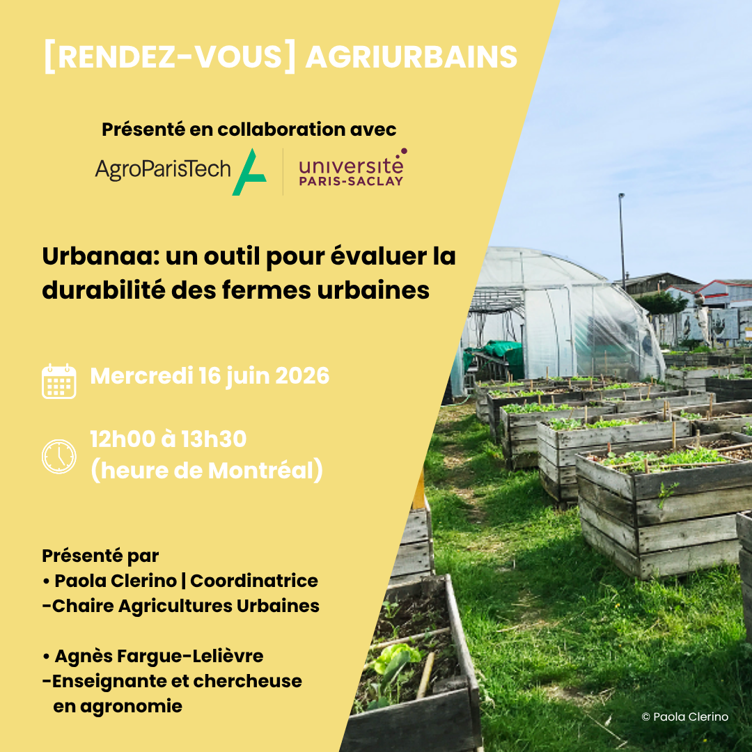 Vous devez vous inscrire à la liste des [Rendez-vous AgriUrbains], si vous ne l’êtes pas déjà, pour obtenir les détails de connexion quelques jours avant le webinaire.
